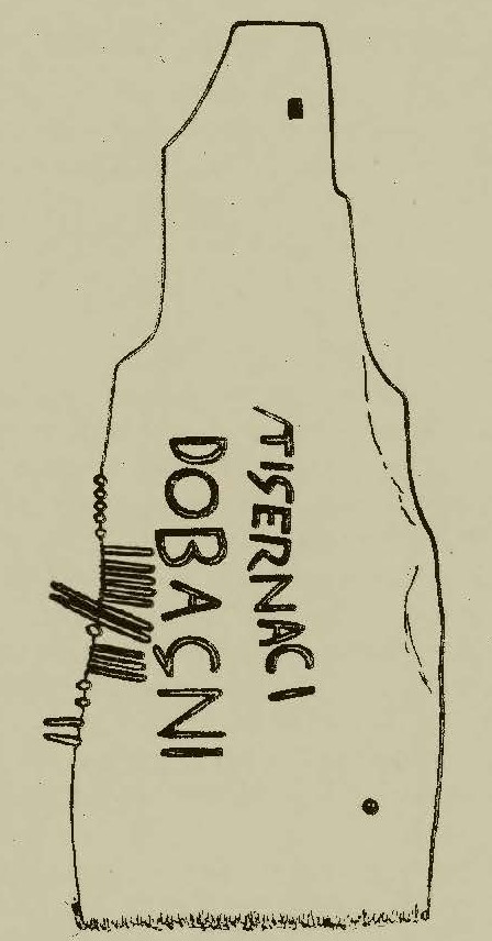 ‘DOVAGNI and DOBAGNI are clearly the same person, and the roman and ogam inscriptions have been placed side by side which draws attention to this… The ogam inscription may commemorate the father while the roman inscription commemorates his son, with the name and patronym only, rather than the Latin “X son of Y” formula. Secondly, the same person may be commemorated in both the roman and ogam inscriptions, but TIGERNACI has been placed above DOBAGNI, rather than below, in order to show the relationship of the latter to the ogam letters’ (Edwards 2007, 326-327).